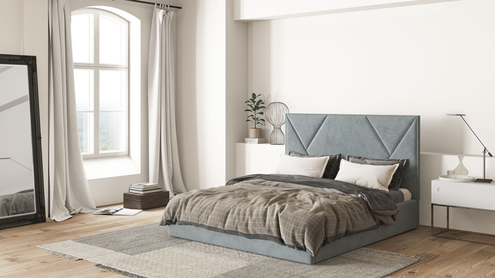 Ліжко двоспальне з м'яким узголів'ям без матраца 180x200 Саманта 2 Світ Меблів з металевим каркасом Сірий (ДСП/Тканина Велюр