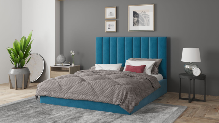 Ліжко TaurusDesign Emilia VIP на ніжках з додатковою металевою цільнозварною рамою 160x200 темно-синій