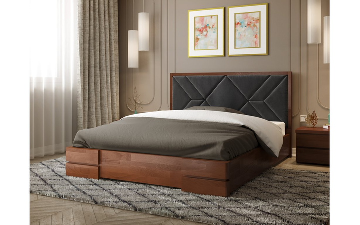 Ліжко двоспальне з натурального дерева бук 160х200 без матраца Еліт Горіх темний Арбор Дерево