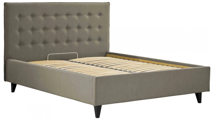 Ліжко двоспальне з м'яким узголів'ям Токіо 180х200 MebiGrand Горіх лісовий/Темно-бежевий (натуральне дерево/тканина Аляска 0