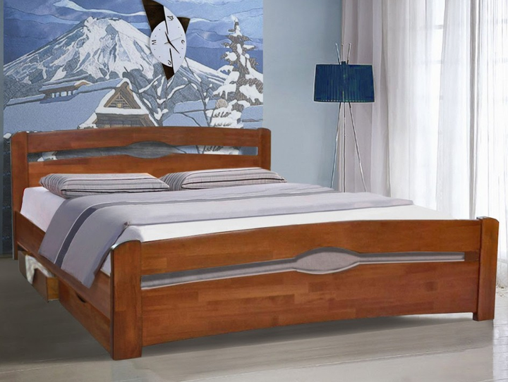 Ліжко двоспальне з натурального дерева бук 160х200 з 2 ящиками Симфонія Люкс Арбор Древ Вільха