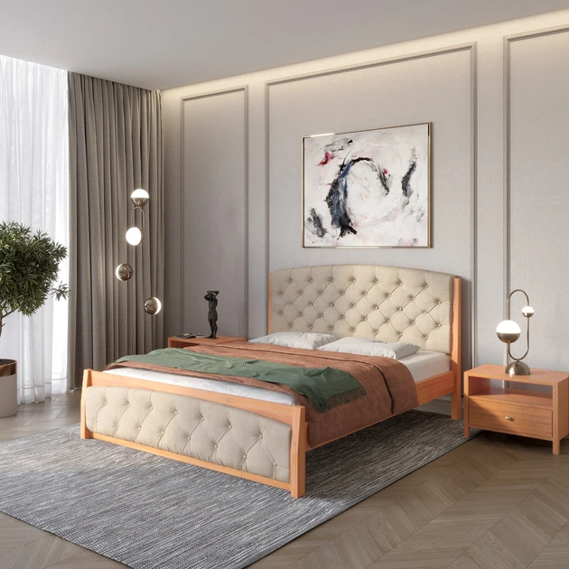 Двоспальне дерев'яне ліжко Mebigrand Мехіко Яблуня/Аляска 23 (Бежевий) 180х200 см (MBG-12033)