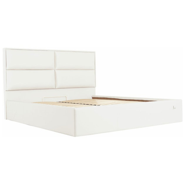 Двоспальне ліжко з масиву дуба Лоренцо 150х220 з підйомним механізмом Біла емаль Крок ламелів 4,5 см.