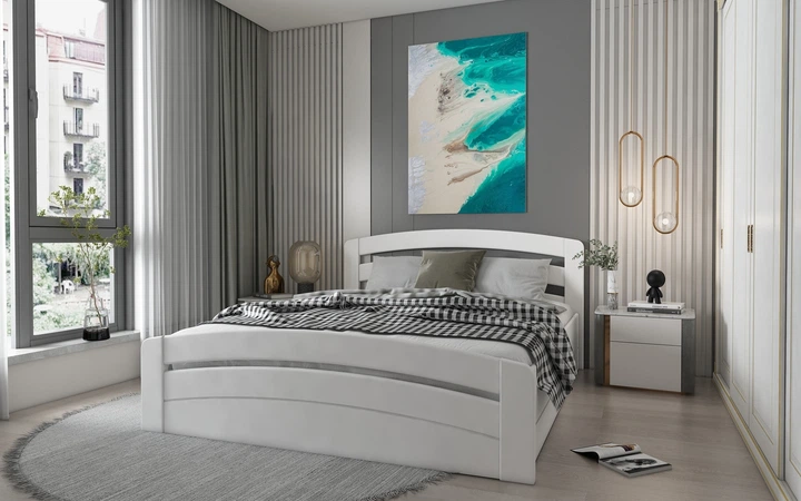 Двоспальне ліжко з масиву дуба Лоренцо 150х220 з підйомним механізмом Біла емаль Крок ламелів 2,5 см.