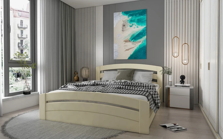 Ліжко з натурального дерева сосна з підйомним механізмом Ліра-ПМ 160x200 айворі Stemma