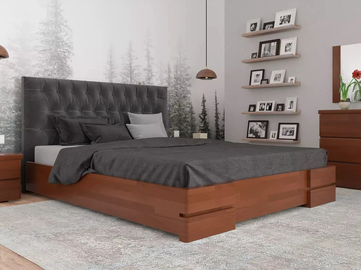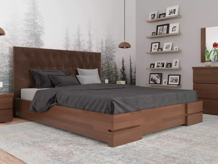 Ліжко двоспальне з натурального дерева бук 160х200 без матраца Камелія ромб Арбор Древ Горіх
