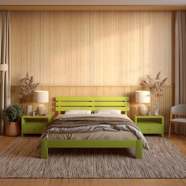 Двоспальне дерев'яне ліжко Mebigrand Новара Оливковий (RAL1020) 180х200 см (MBG-4207)