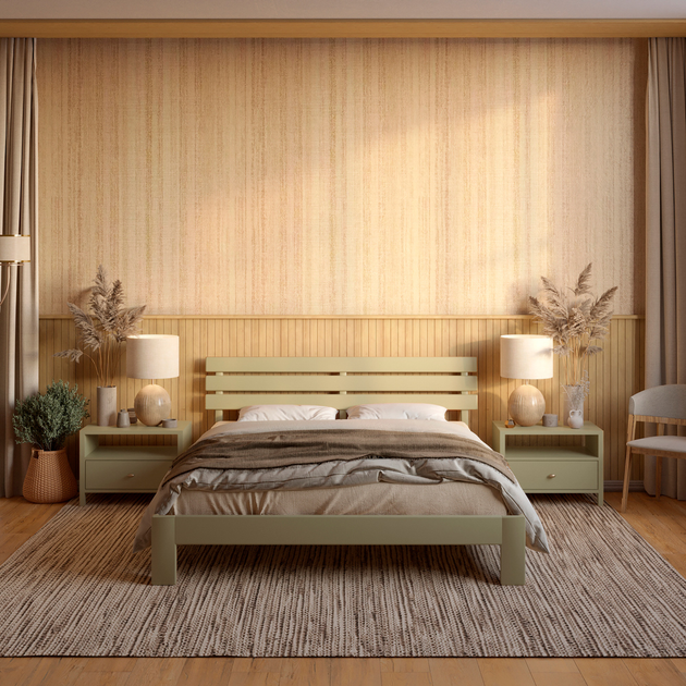 Односпальне дерев'яне ліжко Mebigrand Новара Оливковий (RAL1020) 90х200 см (MBG-4213)