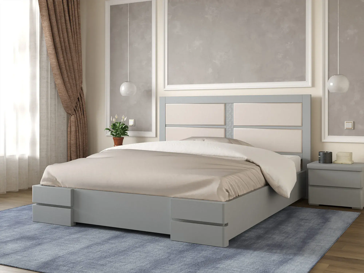 Ліжко двоспальне з натурального дерева бук 160х200 без матраца Кардинал 1 Сірий Арбор Дерево