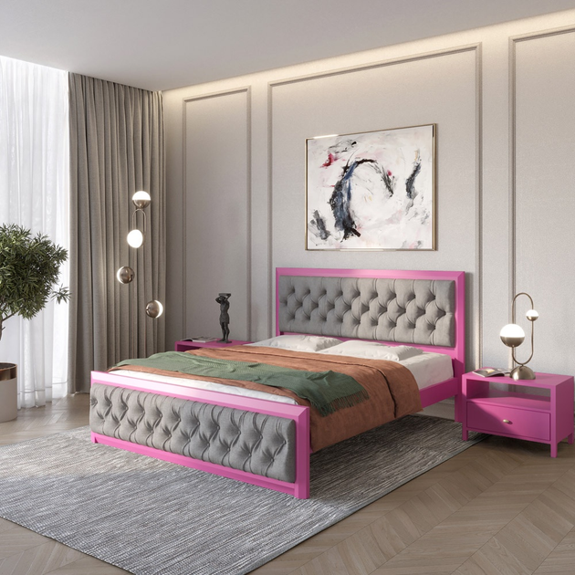 Двоспальне дерев'яне ліжко Mebigrand Барселона Б6 Рожевий (S2060R30B)/Аляска 93 (Сірий) 180х200 см (MBG-14495)