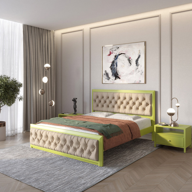 Двоспальне дерев'яне ліжко Mebigrand Барселона Б2 Лайм (S3050G70Y)/Аляска 23 (Бежевий) 180х200 см (MBG-12563)