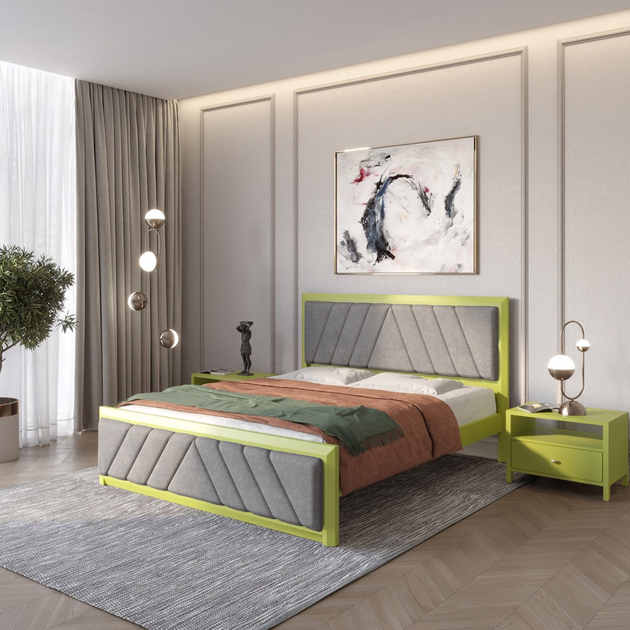 Двоспальне дерев'яне ліжко Mebigrand Барселона Б2 Лайм (S3050G70Y)/Аляска 93 (Сірий) 180х200 см (MBG-13643)