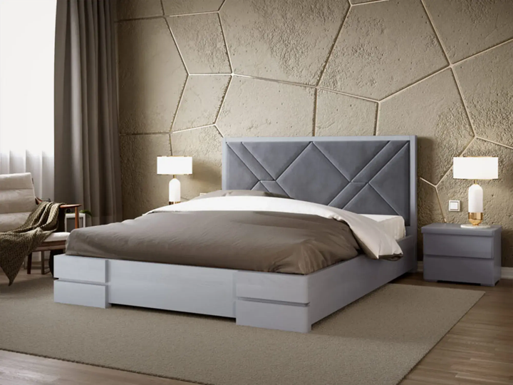 Ліжко двоспальне з підйомним механізмом 160х200 Мія Шик-Галичина сірий (дерев'яні ламелі/дерево/тканина)
