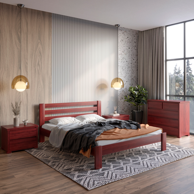 Односпальне ліжко з масиву вільхи Палермо плюс 80х220 Барвник Tin 125 червоний Крок ламелів 2,5