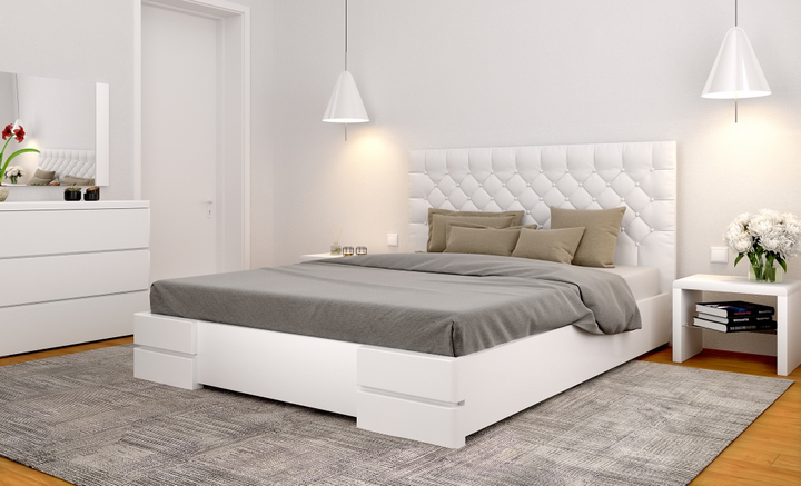 Двоспальне ліжко з масиву дуба Лоренцо 200х220 з підйомним механізмом Біла емаль Крок ламелів 5,5 см.