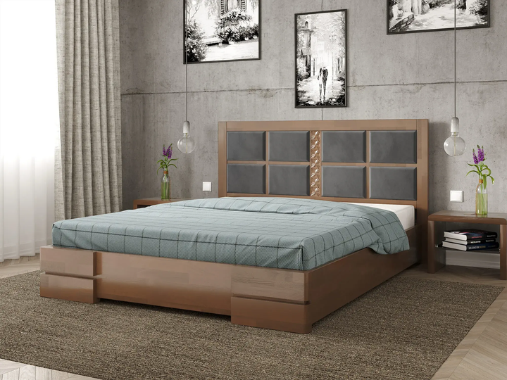 Ліжко двоспальне з натурального дерева сосна 180х200 з підйомним механізмом Кардинал 2 Горіх Арбор Древ