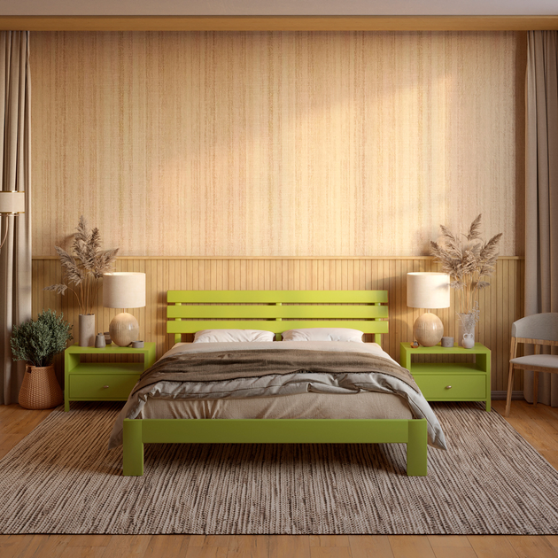Односпальне дерев'яне ліжко Mebigrand Новара Оливковий (RAL1020) 90х190 см (MBG-4212)