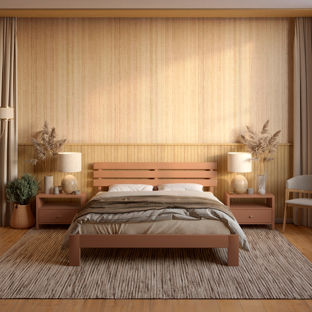 Односпальне дерев'яне ліжко Mebigrand Новара Коричневий (RAL8025) 90х190 см (MBG-4127)