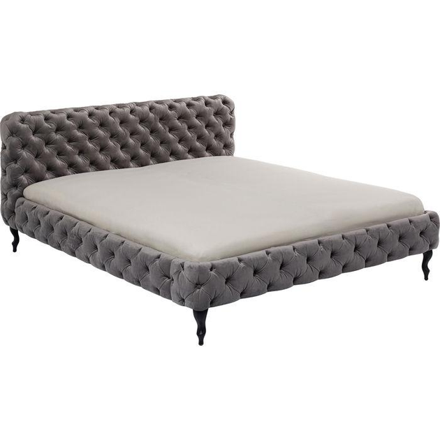 Ліжко м'яке двоспальне з каретною стяжкою MeBelle RUMI 160 х 200 см ламельною основою, сірий велюр