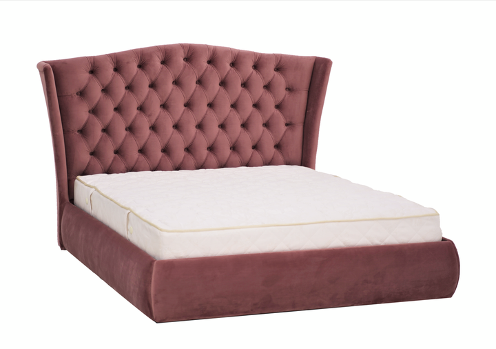 Ліжко двоспальне з м'яким узголів'ям MeBelle DIVA 160х200 см з каретною стяжкою, троянда рожева велюр