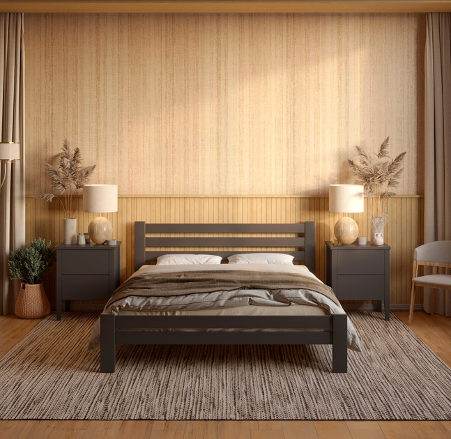 Односпальне дерев'яне ліжко Mebigrand Прем'єра Графітовий (RAL9011) 90х200 см (MBG-2852)