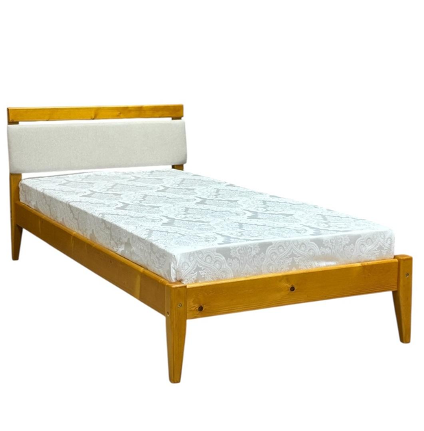 Односпальне дерев'яне ліжко з м'якою вставкою Скіф Л-157 бурштин / твіст-1 / 80х190