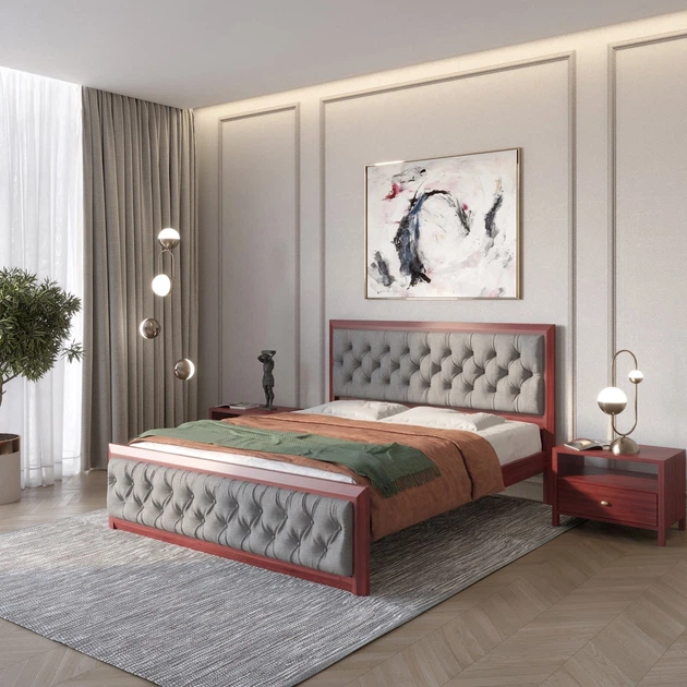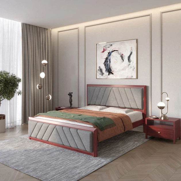 Двоспальне дерев'яне ліжко Mebigrand Барселона Б4 Махонь/Аляска 93 (Сірий) 140х200 см (MBG-13903)
