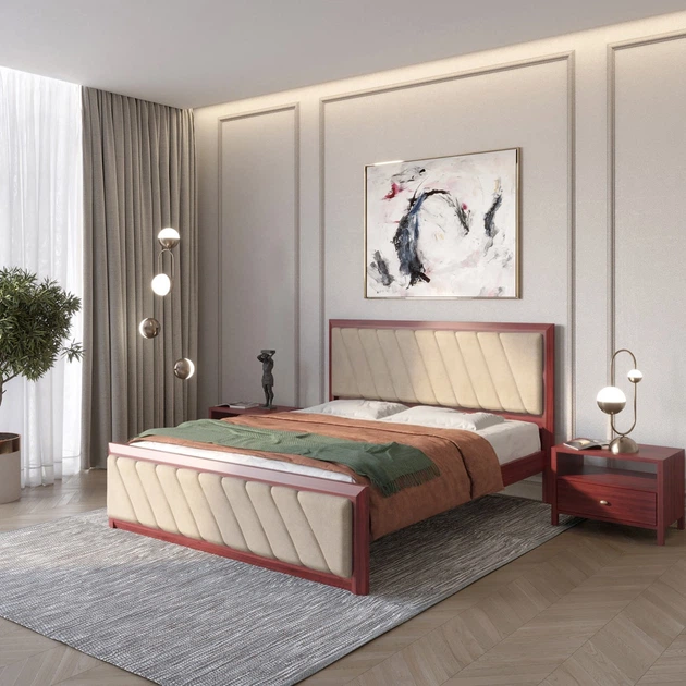 Двоспальне дерев'яне ліжко Mebigrand Барселона Б6 Махонь/Аляска 23 (Бежевий) 140х200 см (MBG-13255)