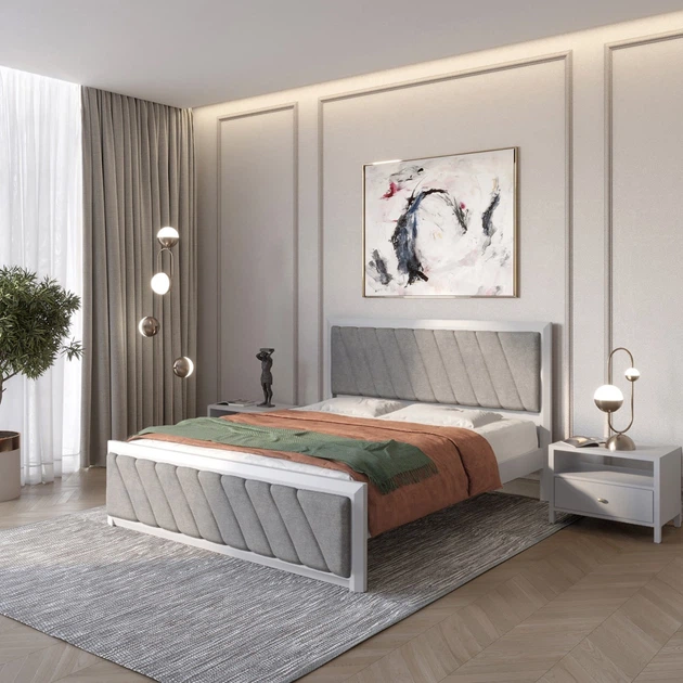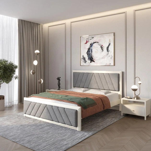 Двоспальне дерев'яне ліжко Mebigrand Барселона Б6 Білий (RAL9003)/Аляска 93 (Сірий) 140х200 см (MBG-14431)