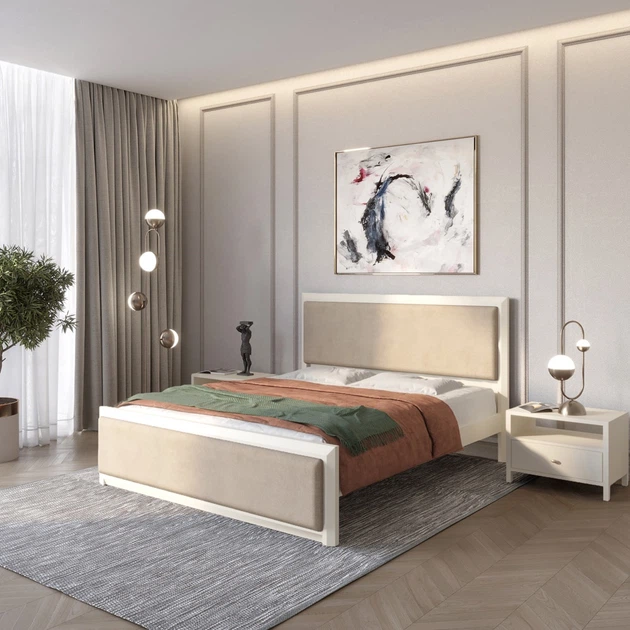Двоспальне дерев'яне ліжко Mebigrand Барселона Б6 Айворі (S0505Y30R)/Аляска 23 (Бежевий) 140х200 см (MBG-13375)