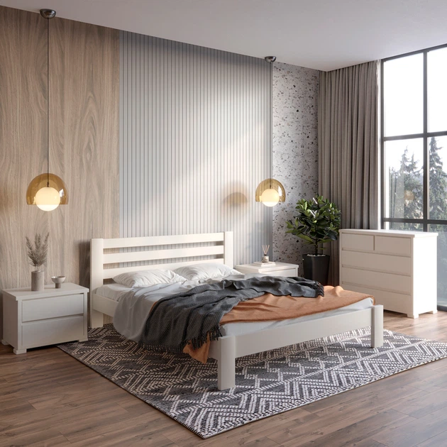 Односпальне ліжко дерев'яне Модена 90х220 Біла емаль Крок ламелів 4,5 см.