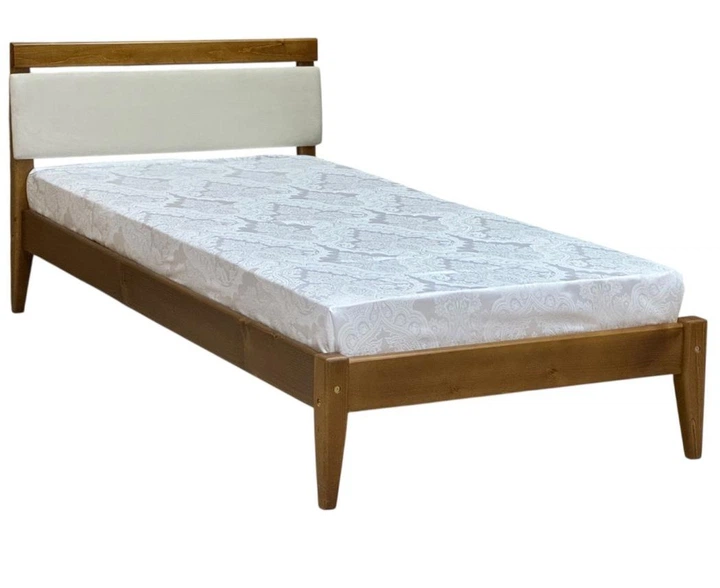 Односпальне дерев'яне ліжко з м'якою вставкою Скіф Л-157 тікове дерево / лагуна-3 велюр / 100х200