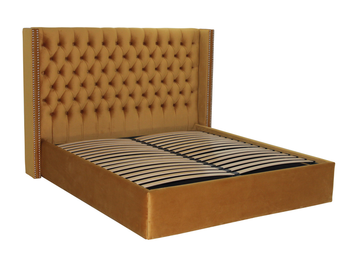 Королівське ліжко двоспальне з каретною стяжкою MeBelle D'ARMANA 200 х 200 см, гірчичний жовтий велюр