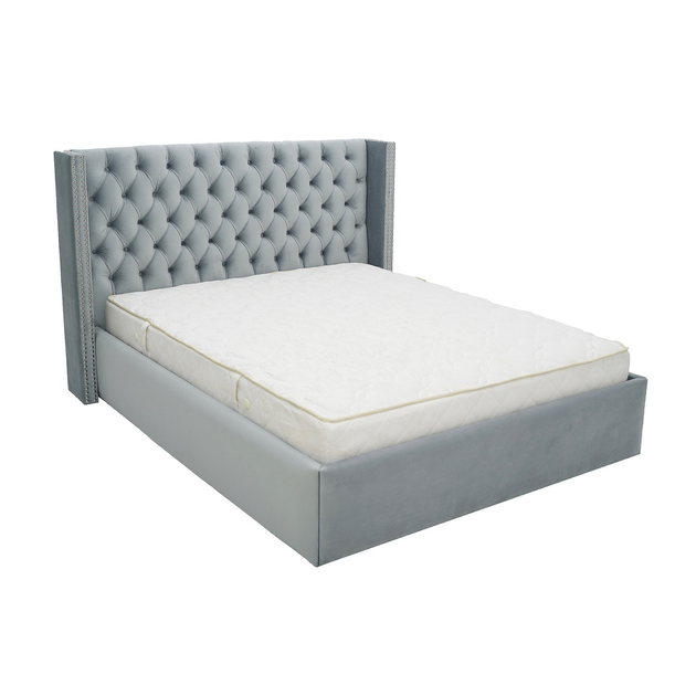 Ліжка з м'яким узголів'ям двоспальні MeBelle D'ARMANA 200 х 200 см, світло-сірий попелястий велюр
