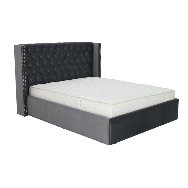Двоспальне ліжко з підйомним механізмом MeBelle D'ARMANA 200х200 см, преміальний сірий графіт велюр