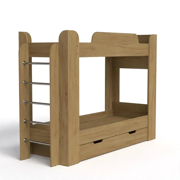 Двоярусне Ліжко з висувною шухлядою Компаніт Твікс 70х190 Дуб крафт золотий