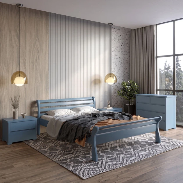 Односпальне дерев'яне ліжко Mebigrand Верона Сіро-синій (S7010R90B) 90х200 см (MBG-4603)
