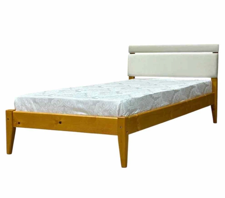 Односпальне дерев'яне ліжко з м’яким узголів’ям Скіф Л-158 бурштин / стім-26 80х190