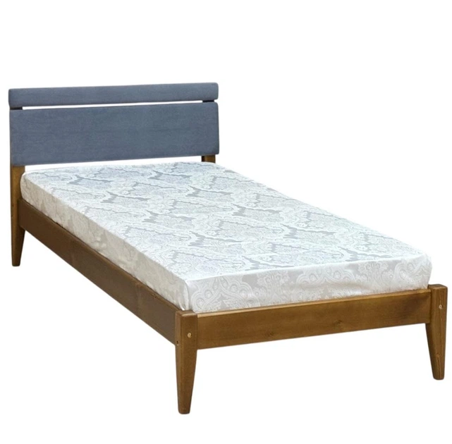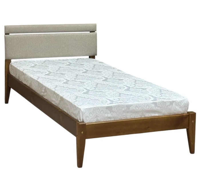 Односпальне дерев'яне ліжко з м’яким узголів’ям Скіф Л-158 тікове дерево / твіст-3 / 80х190