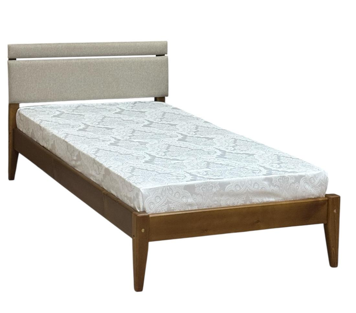 Односпальне дерев'яне ліжко з м’яким узголів’ям Скіф Л-158 тікове дерево / твіст-3 / 90х190