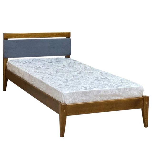 Односпальне дерев'яне ліжко з м'якою вставкою Скіф Л-157 тікове дерево / твіст-3 / 90х200