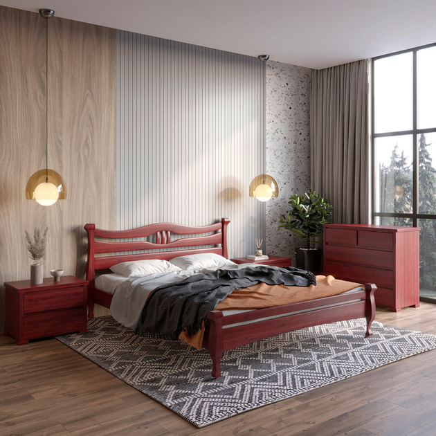 Односпальне ліжко з масиву дуба Палермо плюс 90х190 Барвник Tin 124 червоний Крок ламелів 2,5 см.