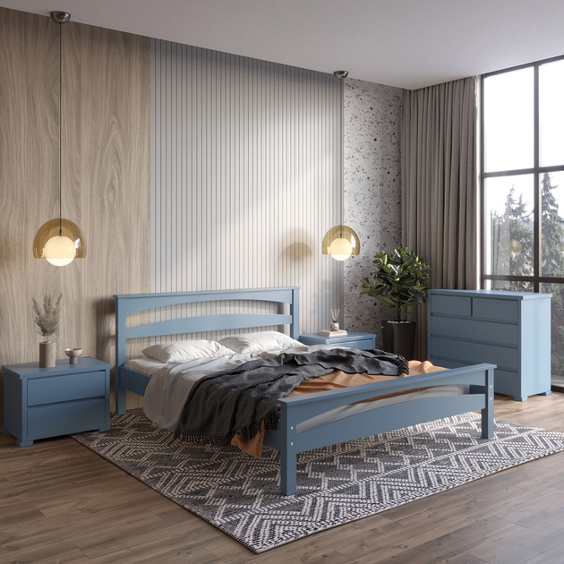 Двоспальне дерев'яне ліжко Mebigrand Чикаго Сіті Сіро-синій (S7010R90B) 180х200 см (MBG-9919)