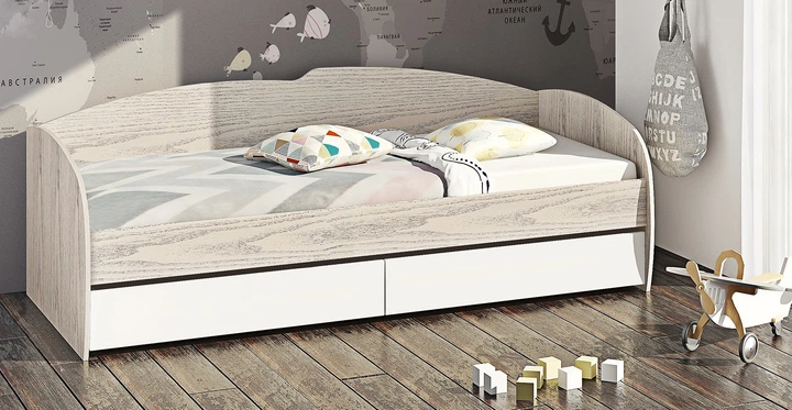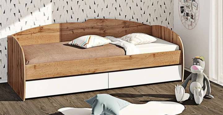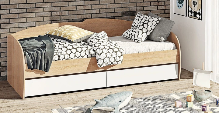 Ліжко Комфорт меблі К-117 односпальне 900 мм ДУБ НАТУРАЛЬНИЙ/БІЛИЙ з видвижними ящиками