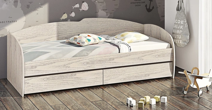 Ліжко Комфорт меблі К-117 односпальне 900 мм ДУБ БІЛЕНИЙ з видвижними ящиками
