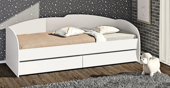 Ліжко Комфорт меблі К-117 односпальне 900 мм БІЛИЙ з видвижними ящиками