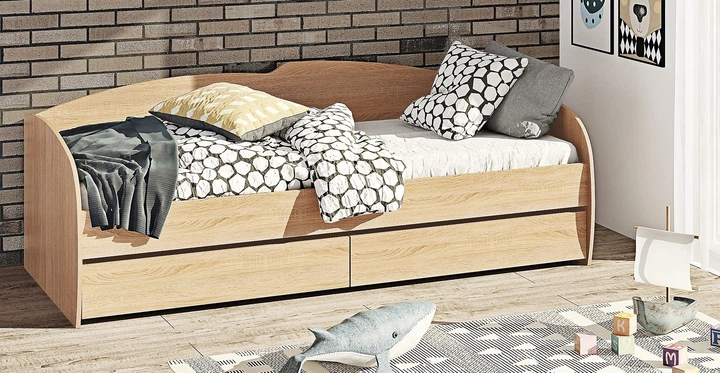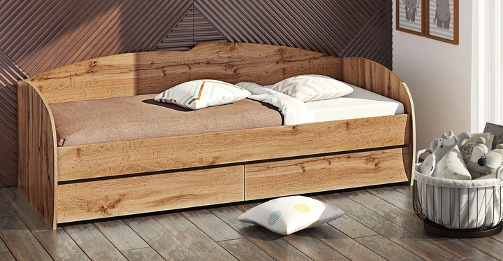 Ліжко Комфорт меблі К-117 односпальне 900 мм ДУБ НАТУРАЛЬНИЙ з видвижними ящикам