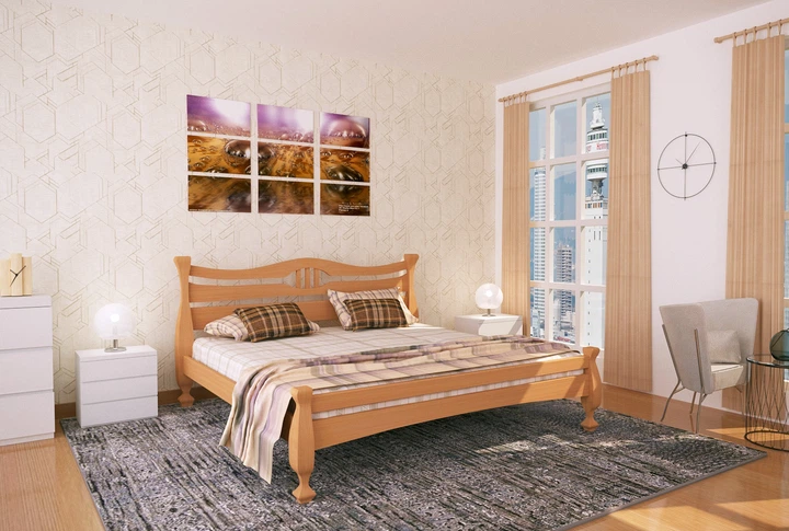 Двоспальне ліжко з масиву вільхи Палермо 150х220 Прозорий лак Крок ламелів 2,5 см.