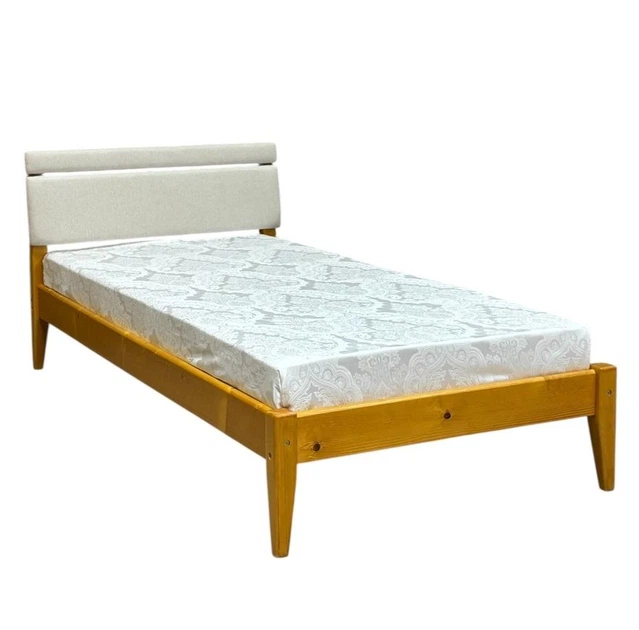 Односпальне дерев'яне ліжко з м’яким узголів’ям Скіф Л-158 бурштин / твіст-3 / 90х190