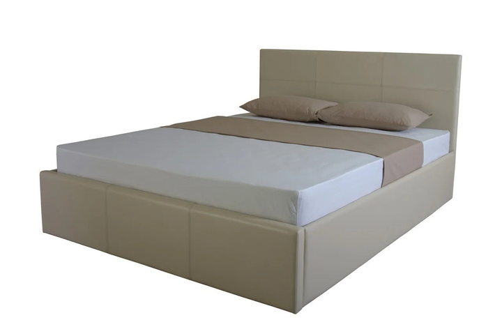 Ліжко двоспальне з м'яким узголів'ям 180x200 Кароліна 5 Світ Меблів Бежевий (ДСП/штучна шкіра Flay з підйомним механізмом/ме